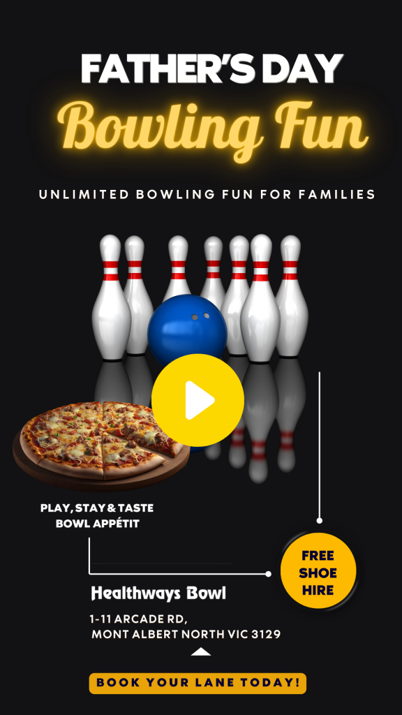 🎳 Unlimited Bowling Packages on Father’s Day. Book your group in for a Special Father’s Day Unlimited Bowling Session:
