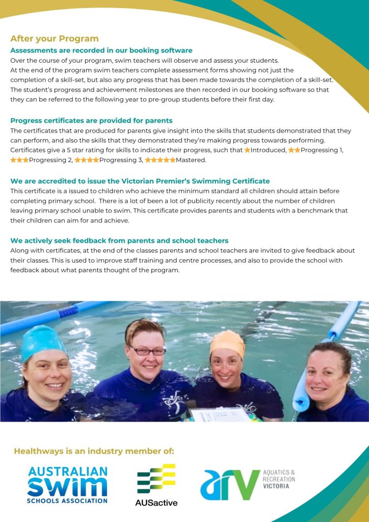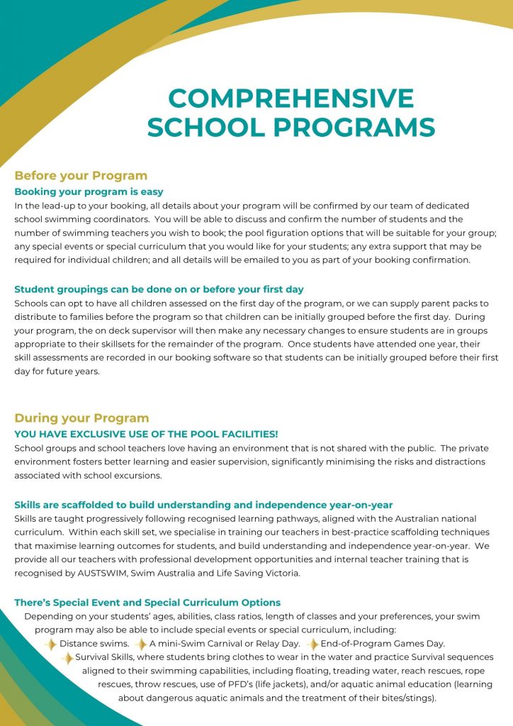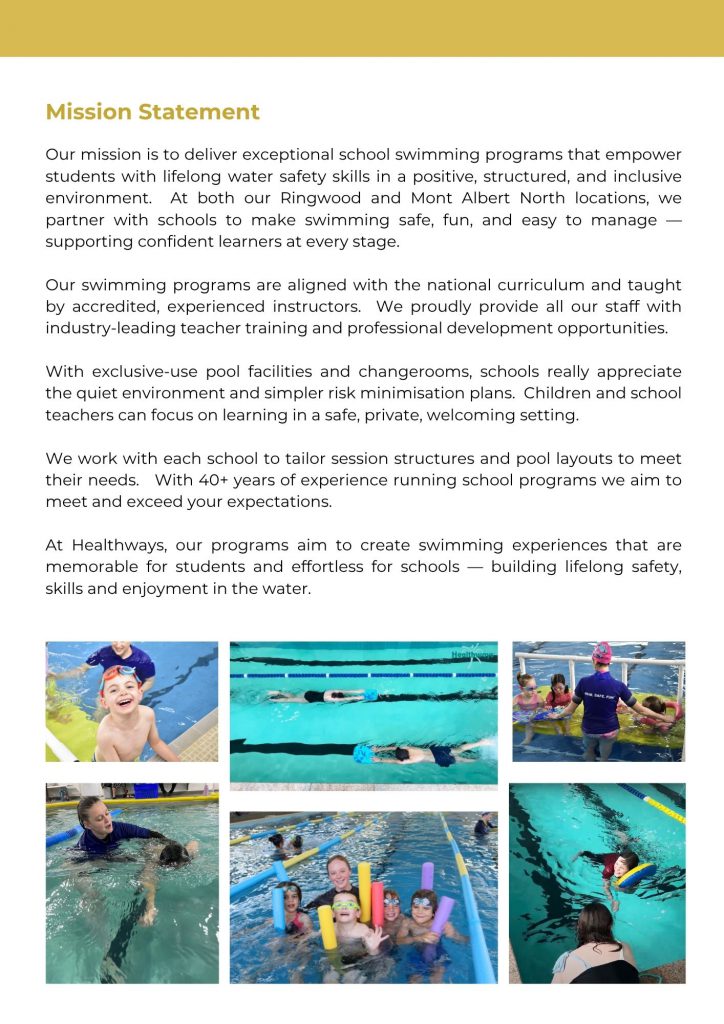 This page describes the swimming programs we offer school groups during school hours.  See our School Swimming Program brochure by CLICKING HERE, or look through the pages below.