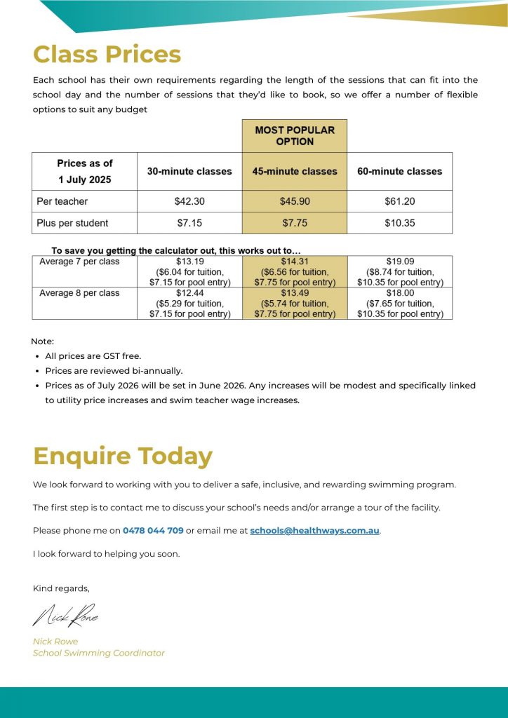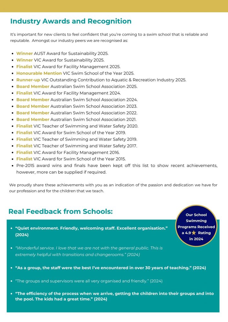 We are currently taking school program enquiries and bookings for 2026/2027.  To make a no obligation enquiry, please fill in the enquiry information below.  We look forward to working with you to deliver a safe, inclusive, and rewarding swimming program: